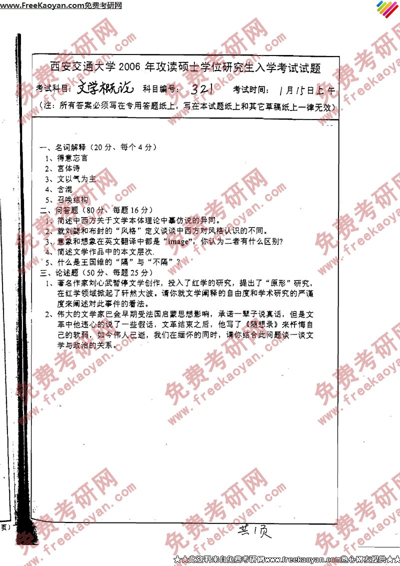 专业课考研经验 本站小编 FreeKaoyan 2018-01-23西安交通大学2005年考研真题-中外建筑史