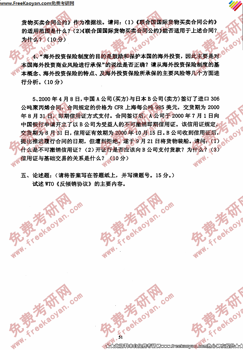 专业课考研经验 本站小编 FreeKaoyan 2018-01-23中国政法大学2003年考研真题-国际法的基本理论问题、冲突规范的基本理论与制度、国际经济法总论国际法的基本理论问题、冲突规范的基本理论与制度、国际经济法总论