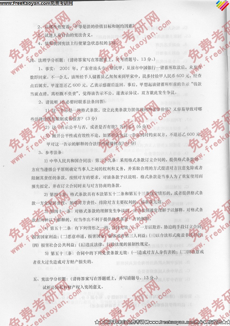 专业课考研经验 本站小编 FreeKaoyan 2018-01-23中国政法大学2004年考研真题-国际公法、宪法学、民法学