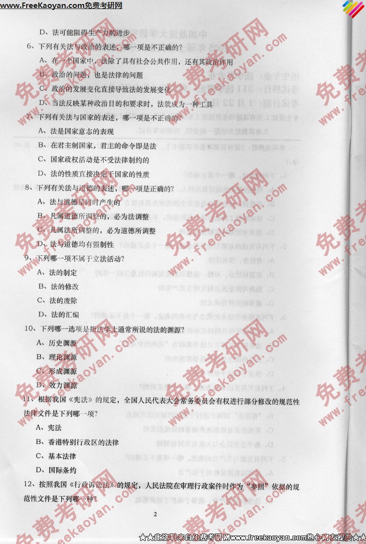 中国政法大学2005年考研真题-法学理论、宪法学(2)