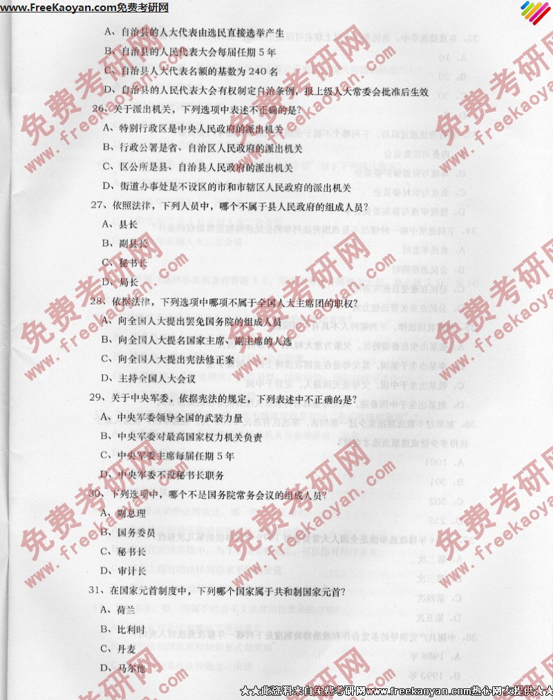 专业课考研经验 本站小编 FreeKaoyan 2018-01-23中国政法大学2004年考研真题-国际公法、宪法学、民法学