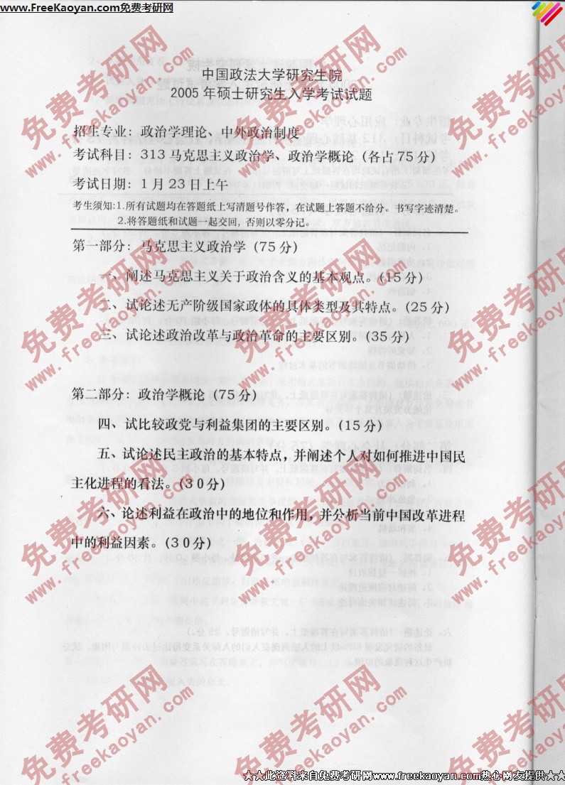 专业课考研经验 本站小编 FreeKaoyan 2018-01-23中国政法大学2005年考研真题-公共政策分析、公共管理、政治学