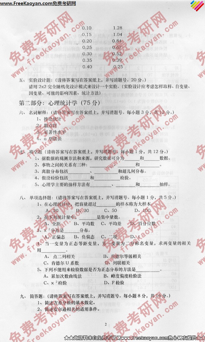 专业课考研经验 本站小编 FreeKaoyan 2018-01-23中国政法大学2005年考研真题-基础心理学