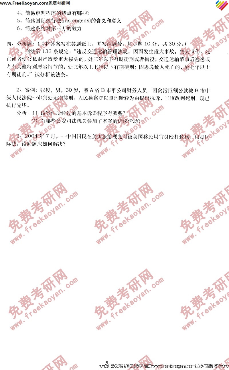 中国政法大学2005年考研真题-刑法学、刑事诉讼法学、国际公法(9)