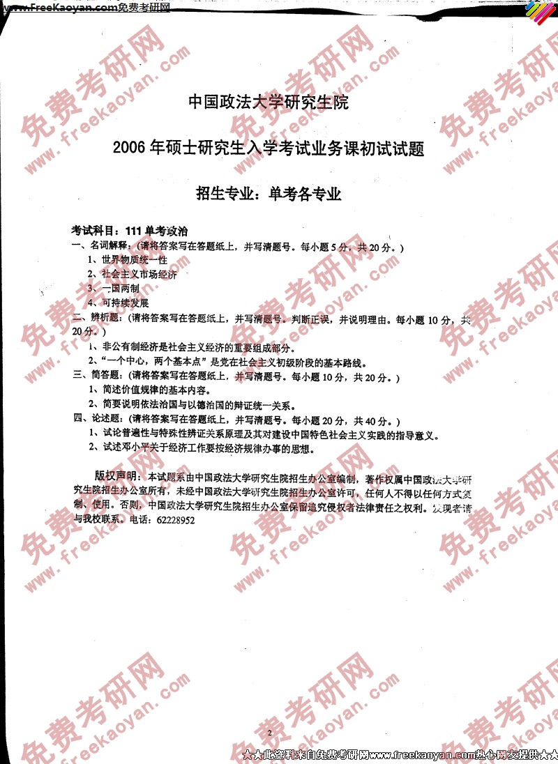 专业课考研经验 本站小编 FreeKaoyan 2018-01-23中国政法大学2005年考研真题-中华人民共和国政治制度、当代西方政治制度、中国宪法