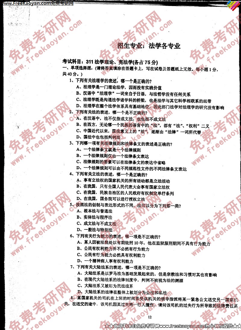 专业课考研经验 本站小编 FreeKaoyan 2018-01-23中国政法大学2005年考研真题-民法学、民事诉讼法学、国际私法