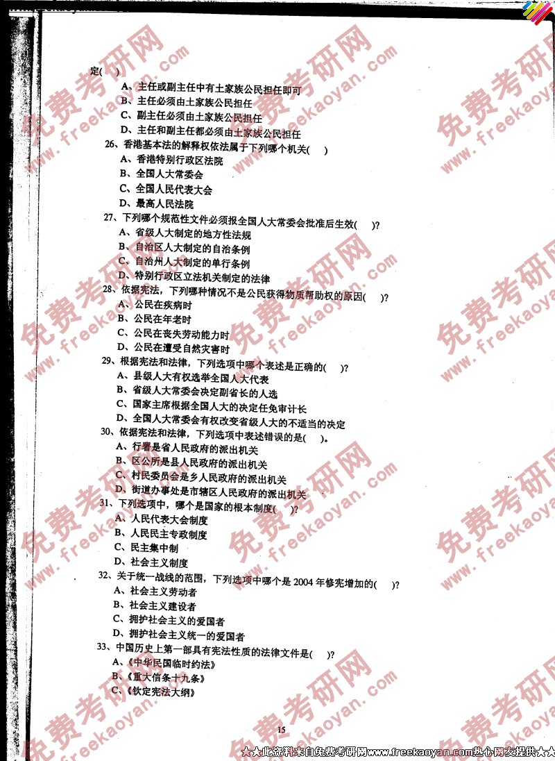 专业课考研经验 本站小编 FreeKaoyan 2018-01-23中国政法大学2005年考研真题-中华人民共和国政治制度、当代西方政治制度、中国宪法