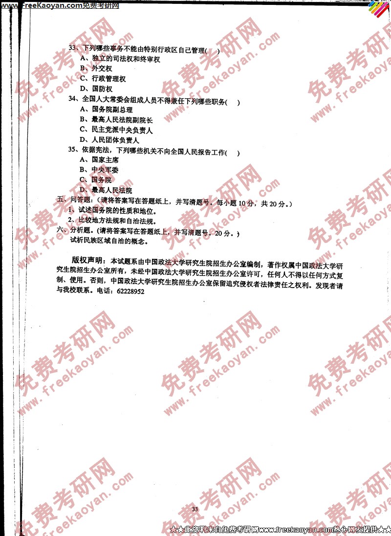 中国政法大学2006年考研真题-法学理论、宪法学(西藏单考)(5)