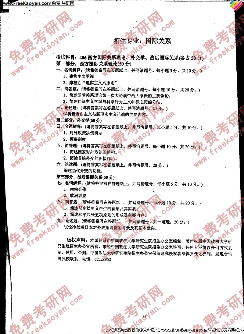中国政法大学2006年考研真题-国际关系学理论、外交学、西方国际关系理论