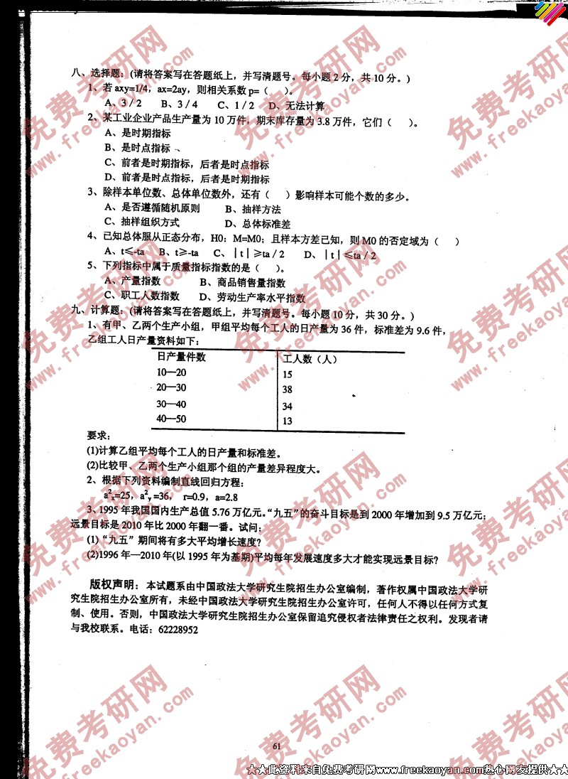 相关话题/中国政法大学 经济与管理 考研真题 微观经济学 统计