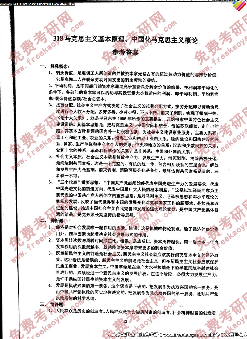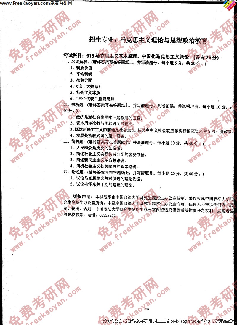 中国政法大学2006年考研真题-马克思主义基本原理、中国化马克思主义概论