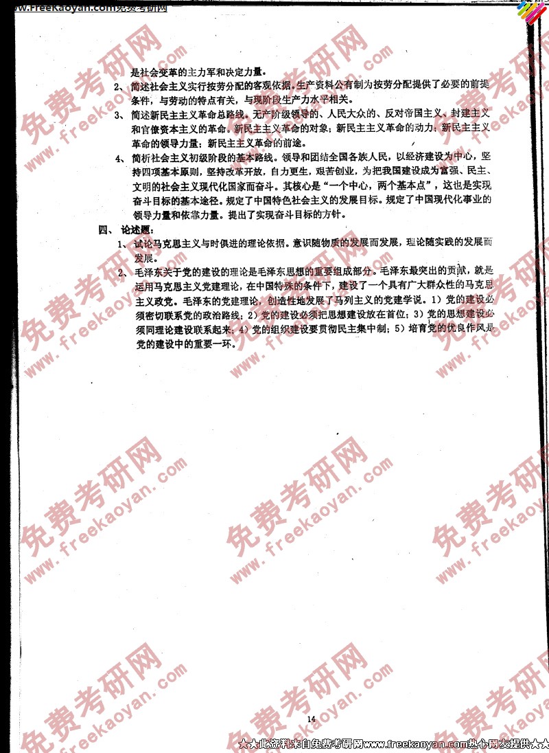 专业课考研经验 本站小编 FreeKaoyan 2018-01-23中国政法大学2005年考研真题-中国政治思想史、马克思主义思想政治教育理论基础