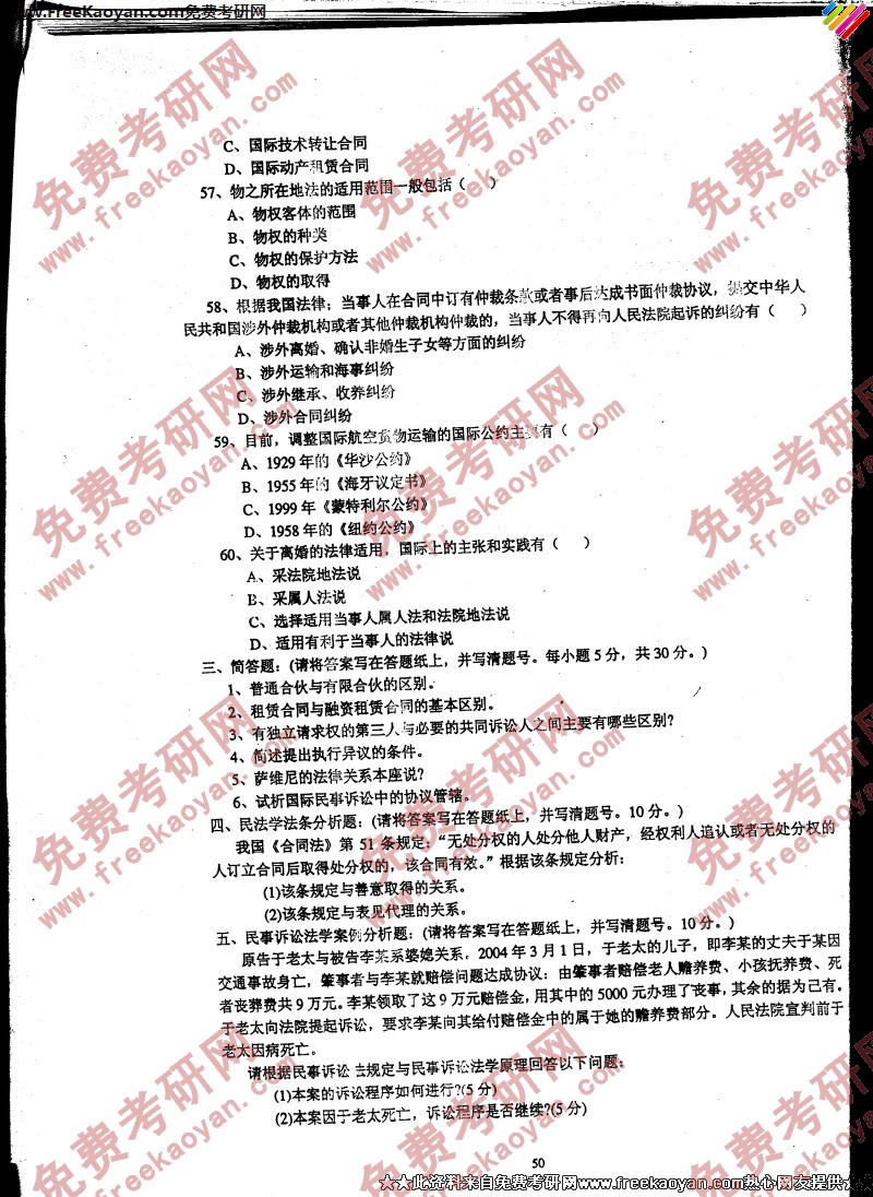 相关话题/民法学 考研真题 中国政法大学 国际私法 民事诉讼法