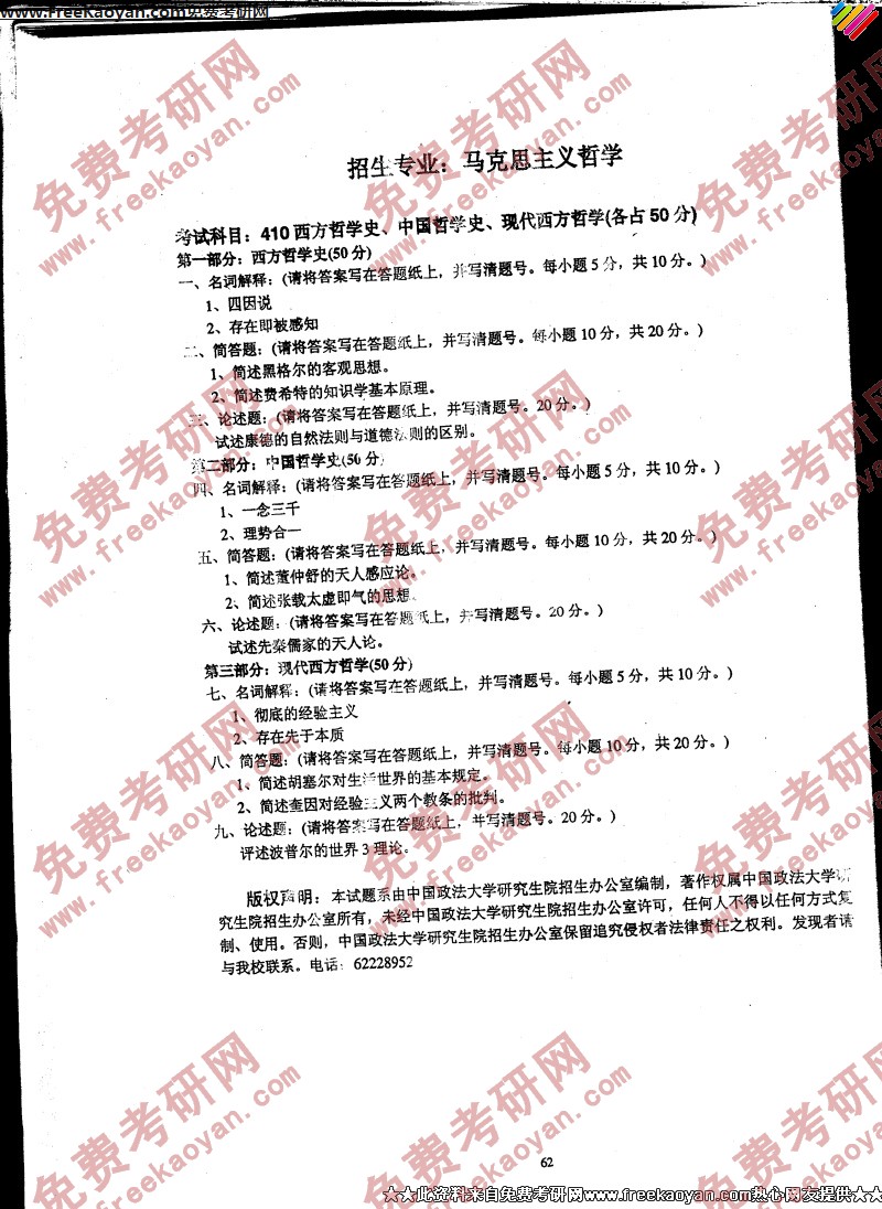 相关话题/西方哲学史 考研真题 中国哲学史 中国政法大学 答案