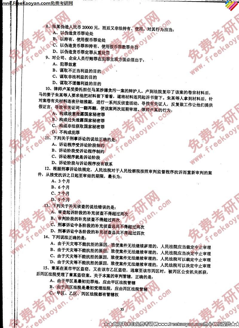 相关话题/刑法学 考研真题 中国政法大学 国际公法 刑事诉讼法