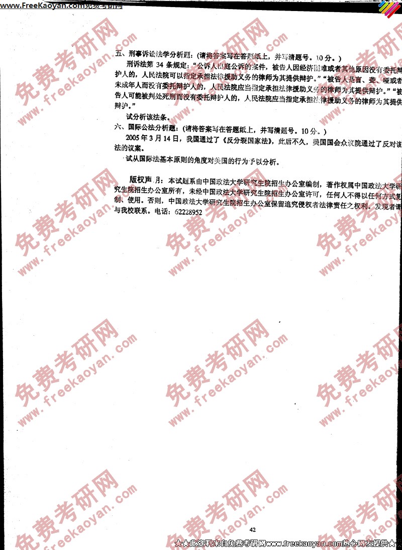 相关话题/刑法学 考研真题 中国政法大学 国际公法 刑事诉讼法