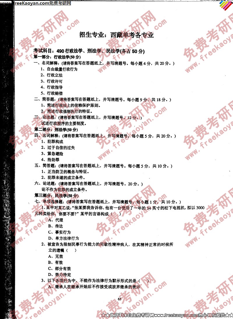 专业课考研经验 本站小编 FreeKaoyan 2018-01-23中国政法大学2006年考研真题-民法学、民事诉讼法、国际私法