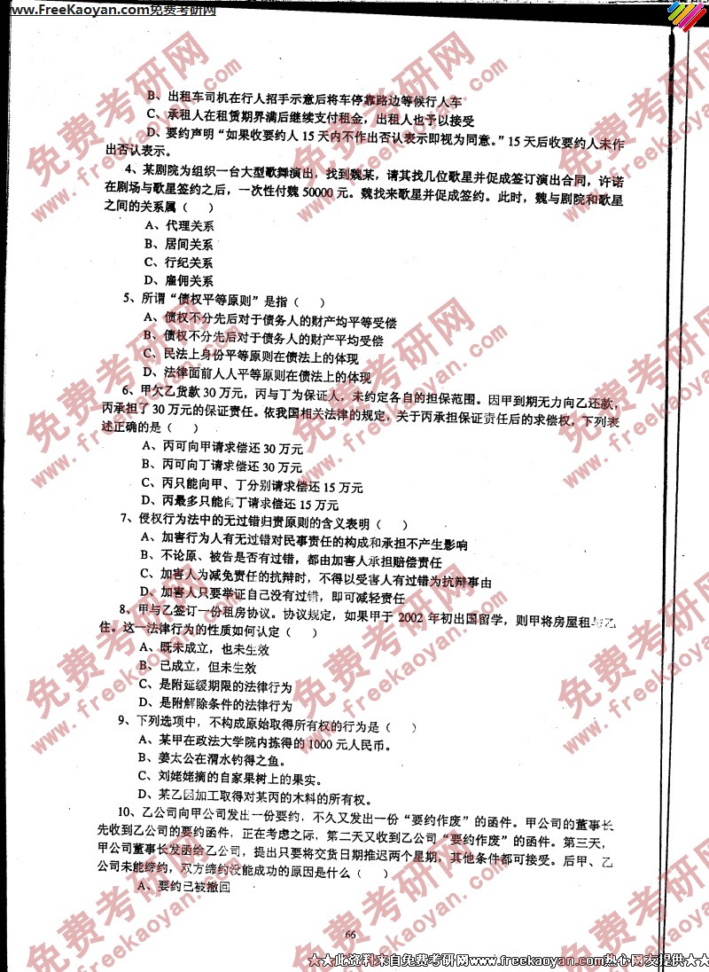 专业课考研经验 本站小编 FreeKaoyan 2018-01-23中国政法大学2006年考研真题-民法学、民事诉讼法、国际私法