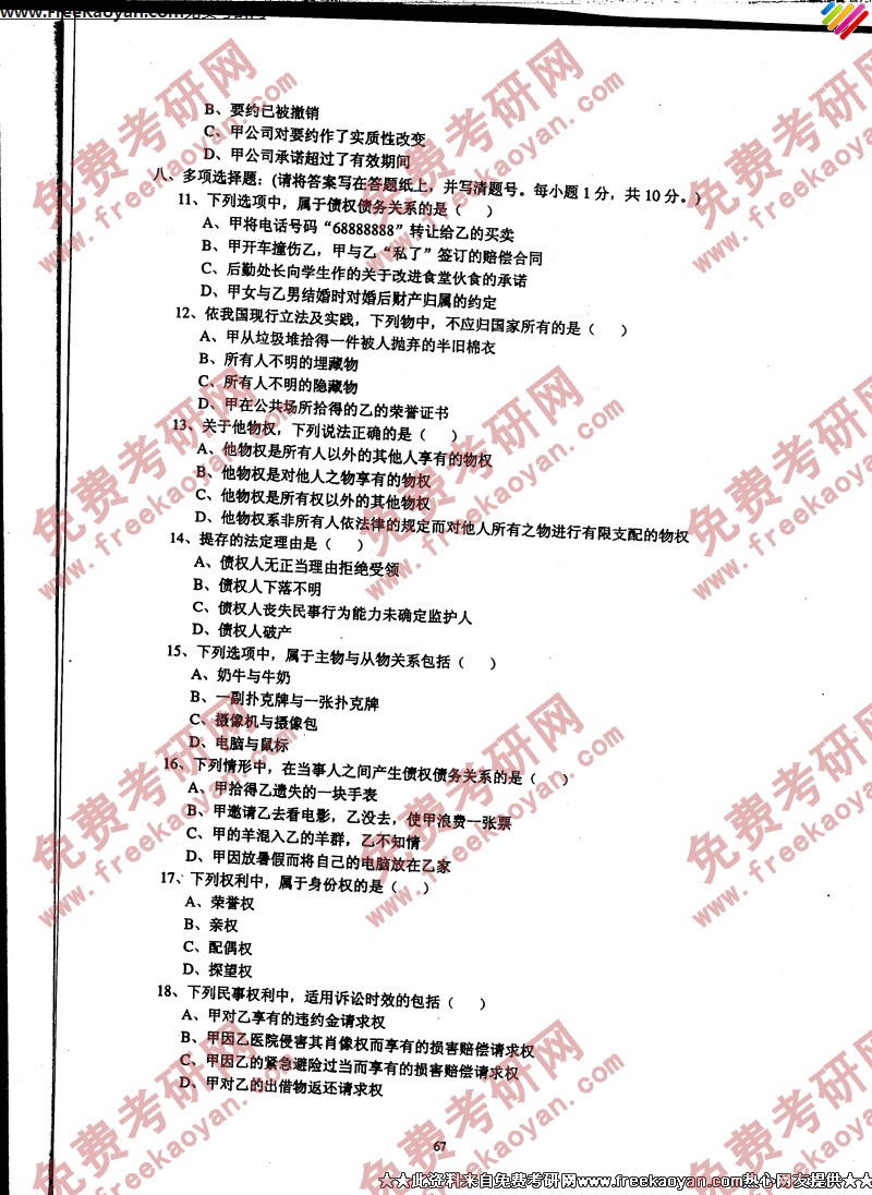专业课考研经验 本站小编 FreeKaoyan 2018-01-23中国政法大学2006年考研真题-民法学、民事诉讼法、国际私法