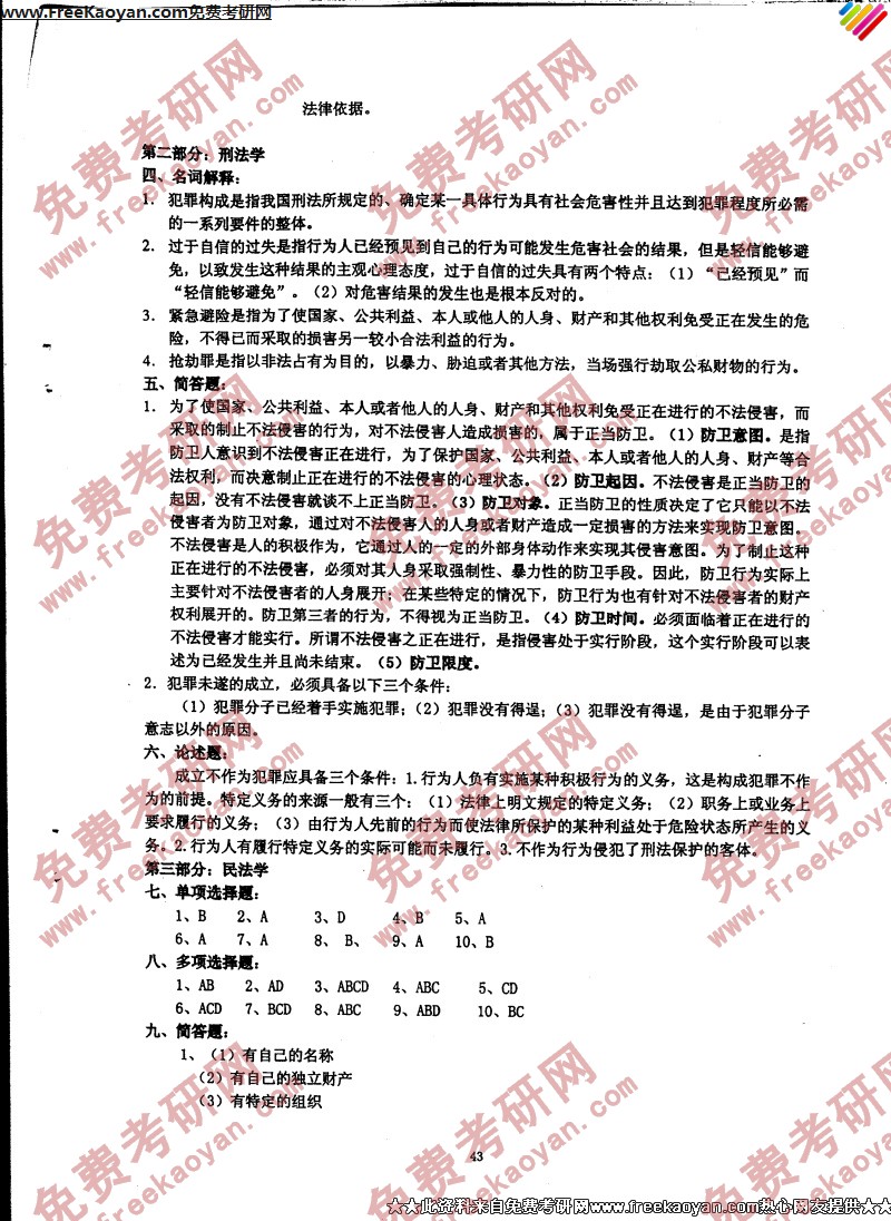 专业课考研经验 本站小编 FreeKaoyan 2018-01-23中国政法大学2006年考研真题-民法学、民事诉讼法、国际私法