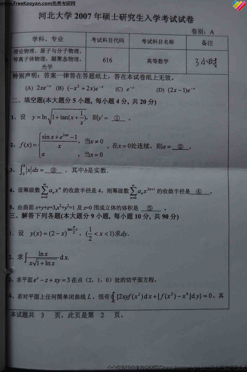 河北大学2007年考研真题-高等数学616(2)