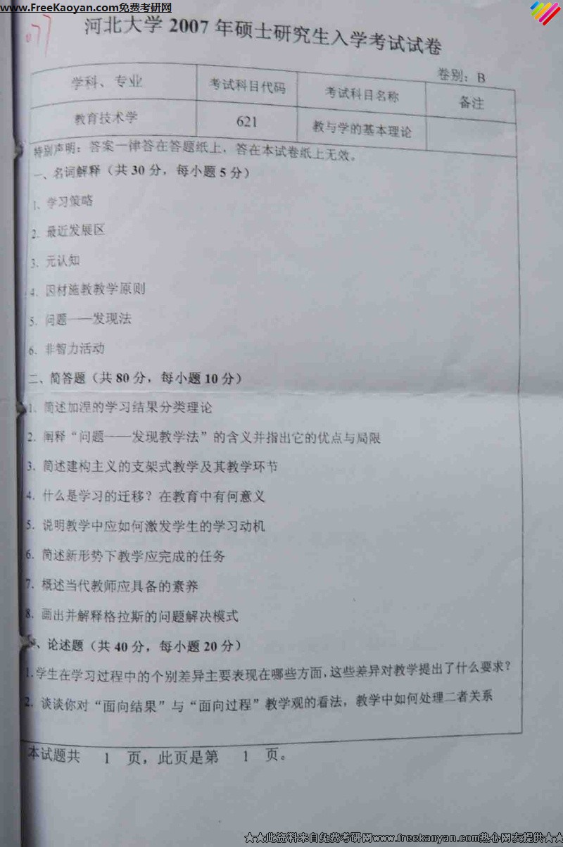 专业课考研经验 本站小编 FreeKaoyan 2018-01-23河北大学2007年考研真题-电子商务