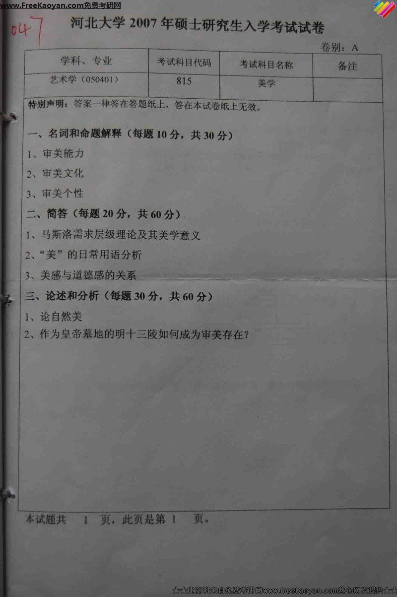专业课考研经验 本站小编 FreeKaoyan 2018-01-23河北大学2007年考研真题-化学综合