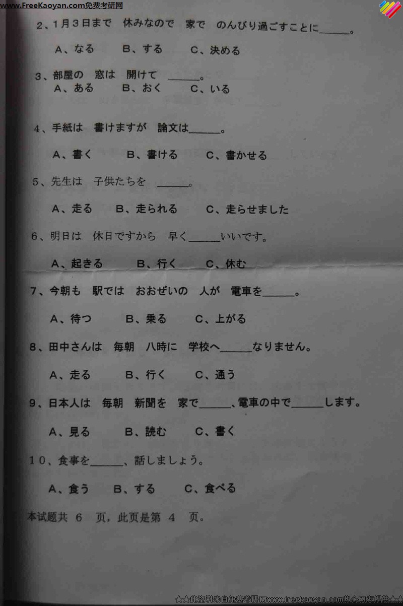 专业课考研经验 本站小编 FreeKaoyan 2018-01-23河北大学2007年考研真题-日本语知识综合