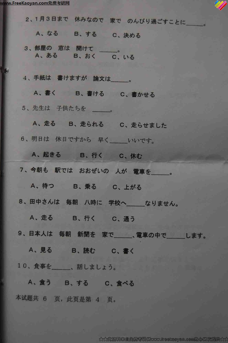 专业课考研经验 本站小编 FreeKaoyan 2018-01-23河北大学2007年考研真题-日本语知识综合