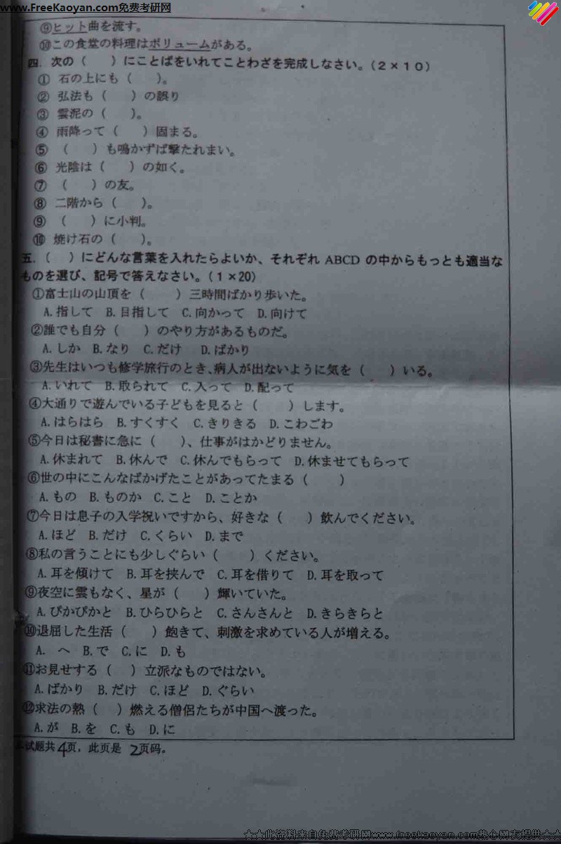 专业课考研经验 本站小编 FreeKaoyan 2018-01-23河北大学2007年考研真题-日语二