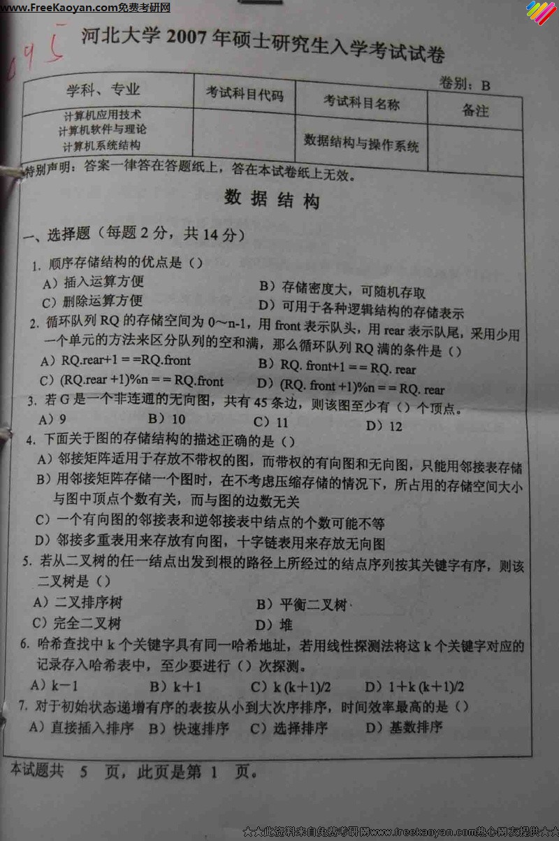 相关话题/考研真题 河北大学 操作系统 数据结构