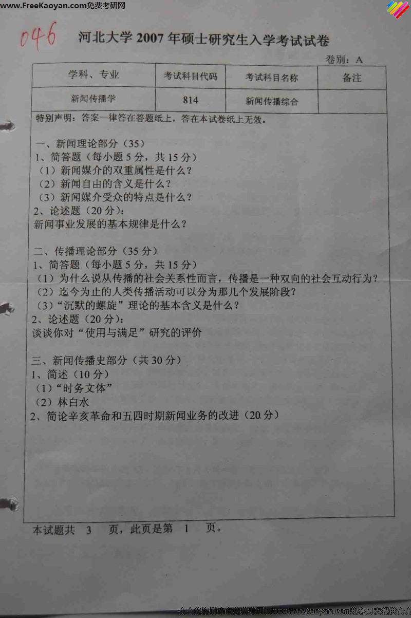 专业课考研经验 本站小编 FreeKaoyan 2018-01-23河北大学2007年考研真题-文史综合