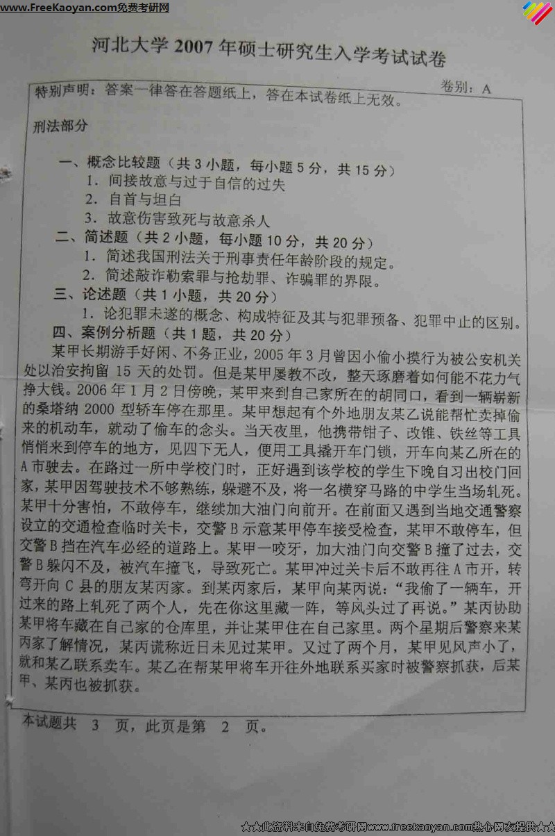 河北大学2007年考研真题-应用法学(民法,刑法)(2)