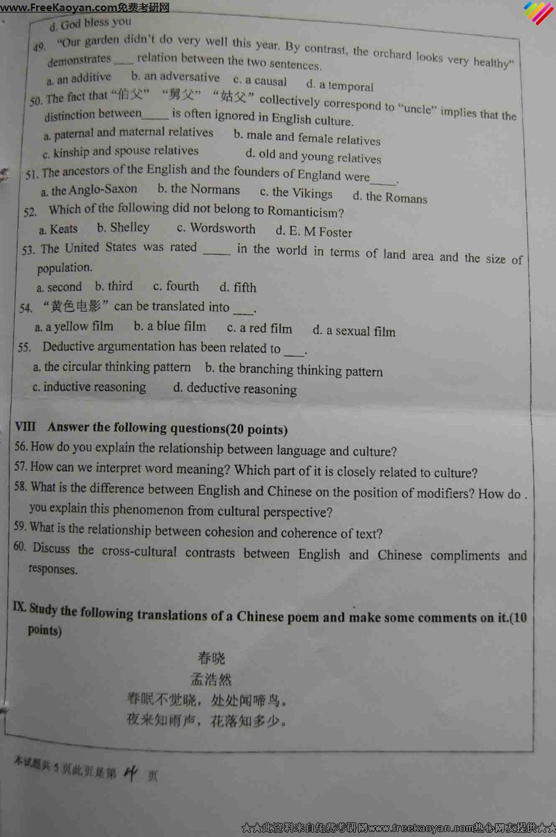 河北大学2007年考研真题-英语综合知识(4)