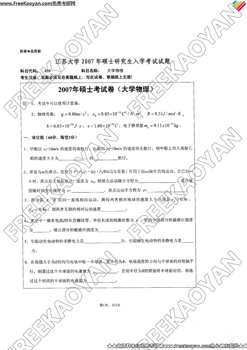 专业课考研经验 本站小编 FreeKaoyan 2018-01-23江苏大学2007年考研真题-安全系统工程