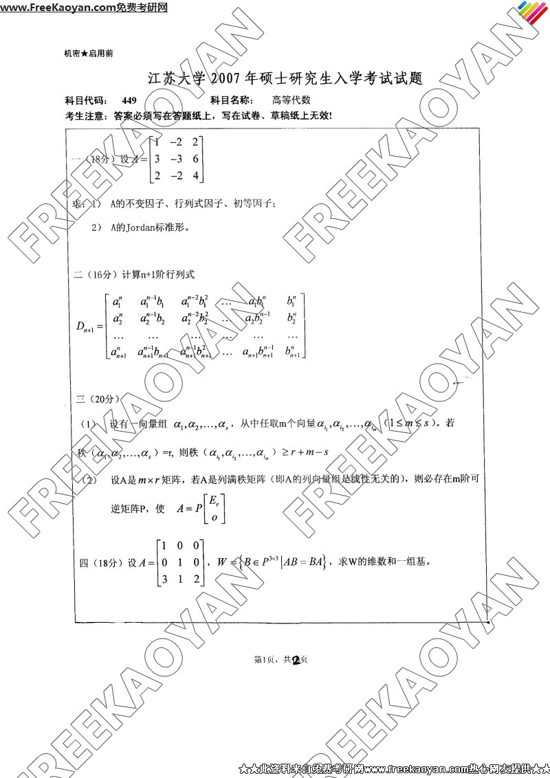 专业课考研经验 本站小编 FreeKaoyan 2018-01-23江苏大学2007年考研真题-程序设计