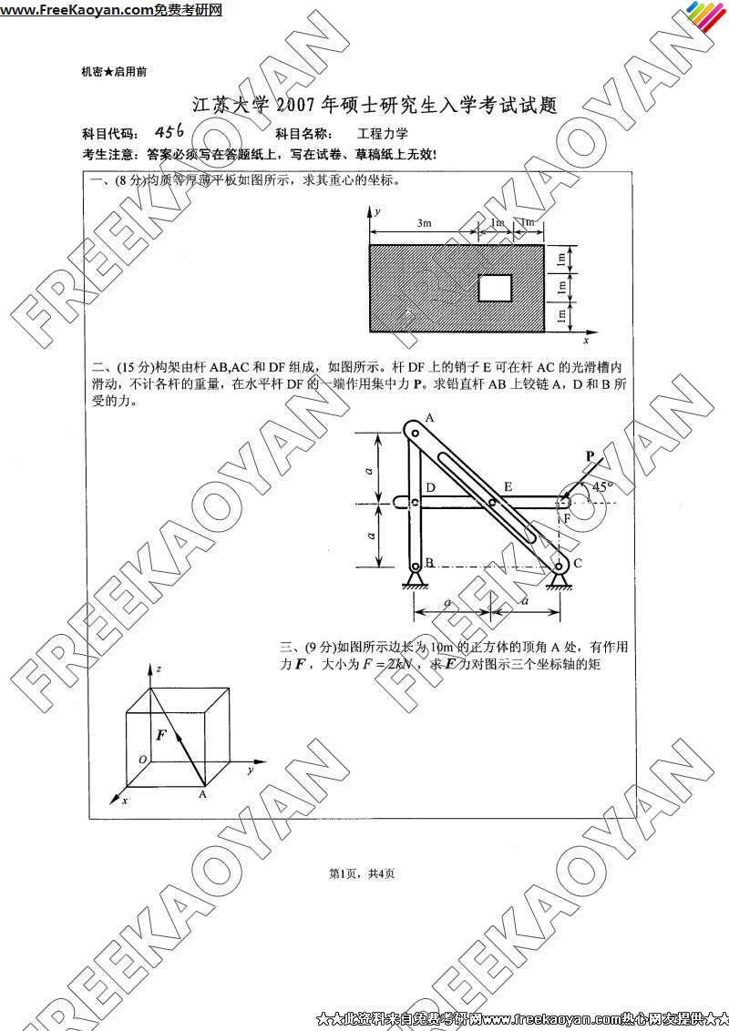 专业课考研经验 本站小编 FreeKaoyan 2018-01-23江苏大学2007年考研真题-大学物理