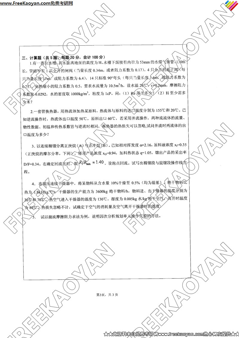 江苏大学2007年考研真题-化工原理(3)