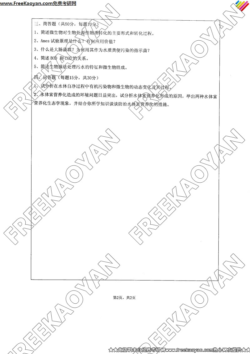 江苏大学2007年考研真题-环境生物学(2)