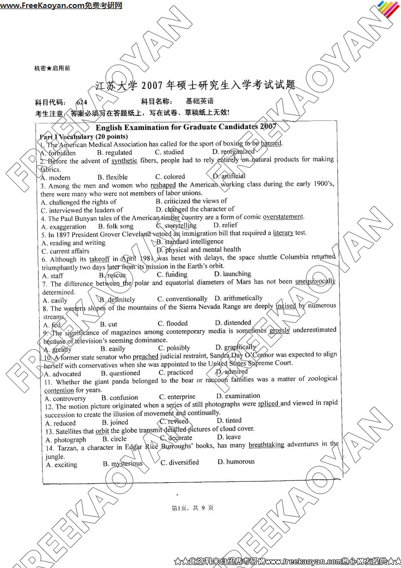 专业课考研经验 本站小编 FreeKaoyan 2018-01-23江苏大学2007年考研真题-高等代数