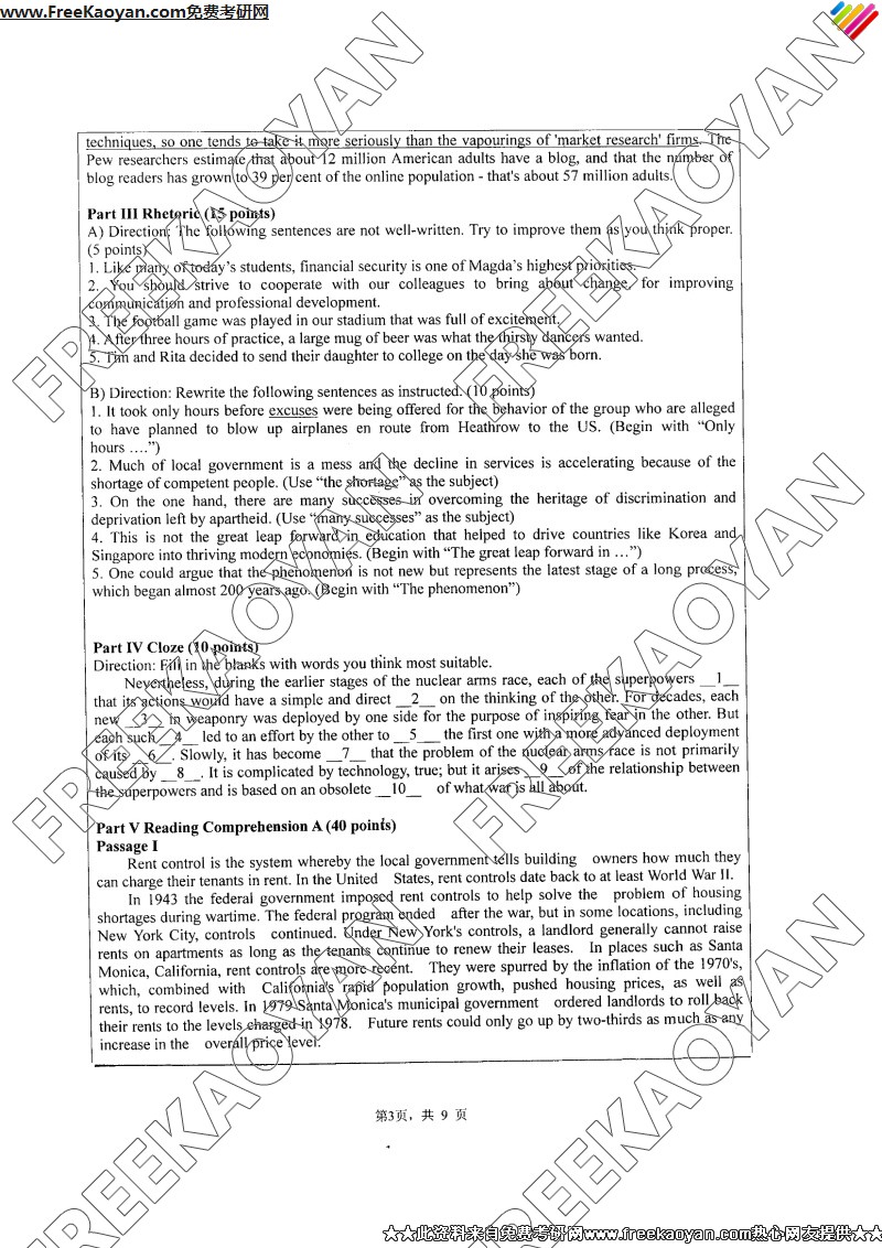 专业课考研经验 本站小编 FreeKaoyan 2018-01-23江苏大学2007年考研真题-高分子化学