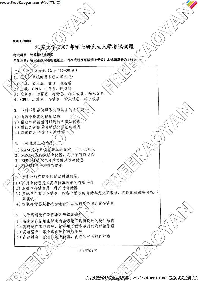专业课考研经验 本站小编 FreeKaoyan 2018-01-23江苏大学2007年考研真题-机械设计学