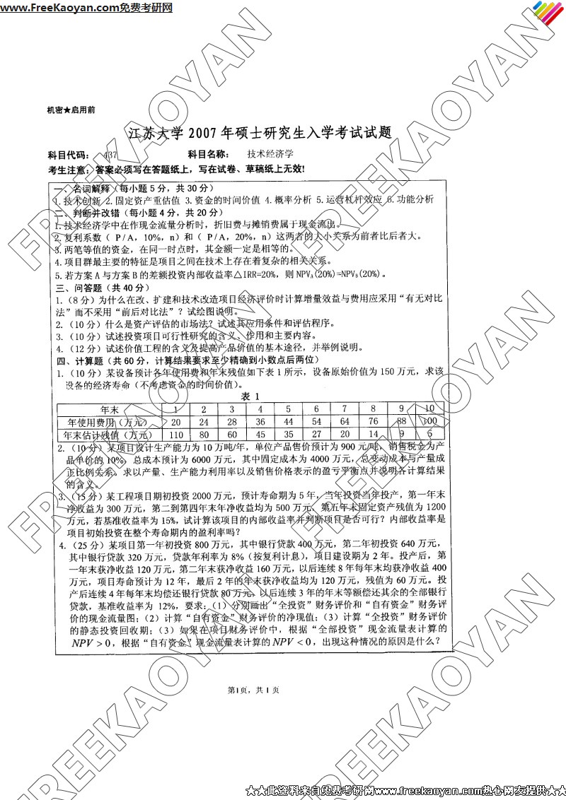 专业课考研经验 本站小编 FreeKaoyan 2018-01-23江苏大学2007年考研真题-工业工程