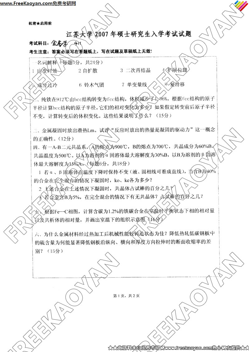 专业课考研经验 本站小编 FreeKaoyan 2018-01-23江苏大学2007年考研真题-基础英语