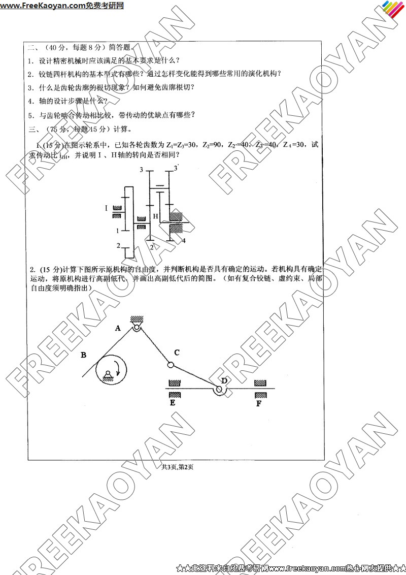 专业课考研经验 本站小编 FreeKaoyan 2018-01-23江苏大学2007年考研真题-机械设计