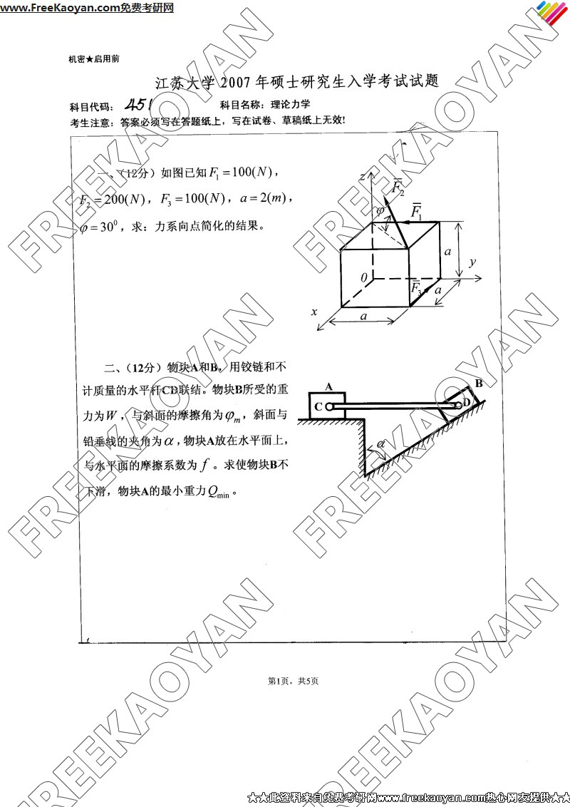 专业课考研经验 本站小编 FreeKaoyan 2018-01-23江苏大学2007年考研真题-结构力学