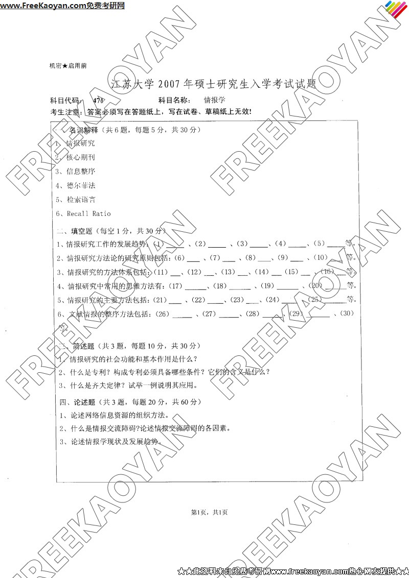 专业课考研经验 本站小编 FreeKaoyan 2018-01-23江苏大学2007年考研真题-基础英语