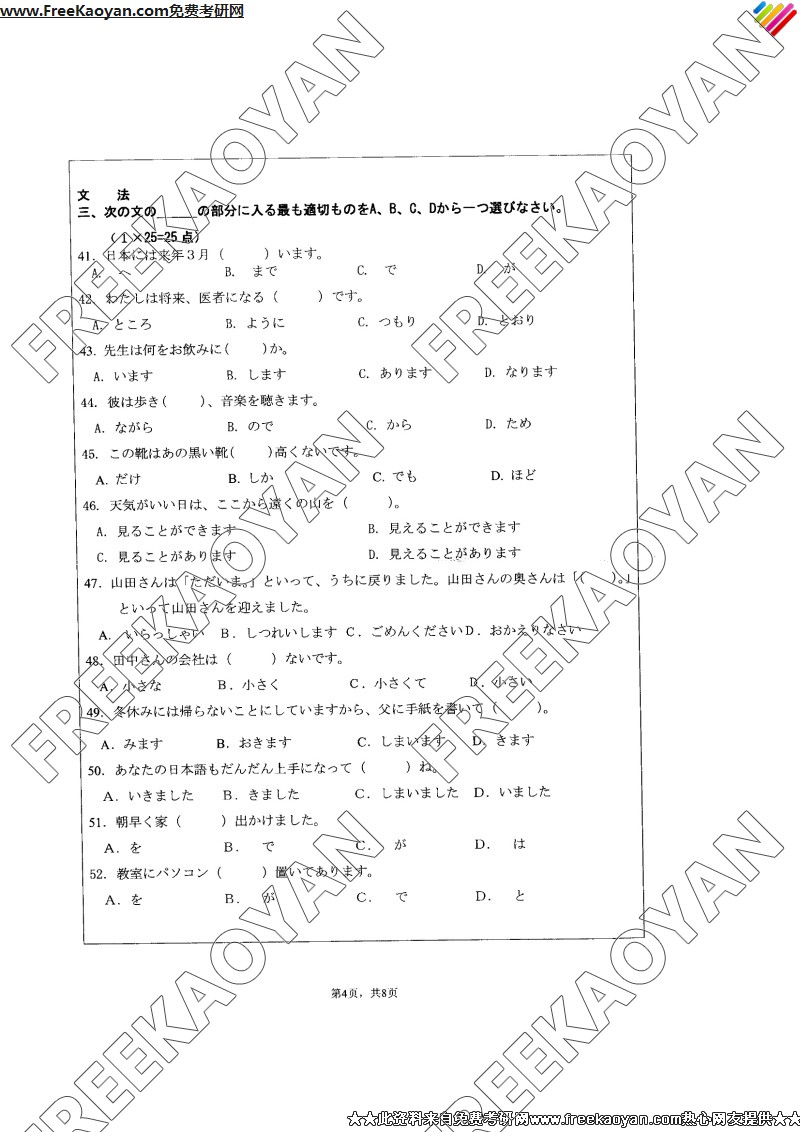 江苏大学2007年考研真题-日语(二外)(4)