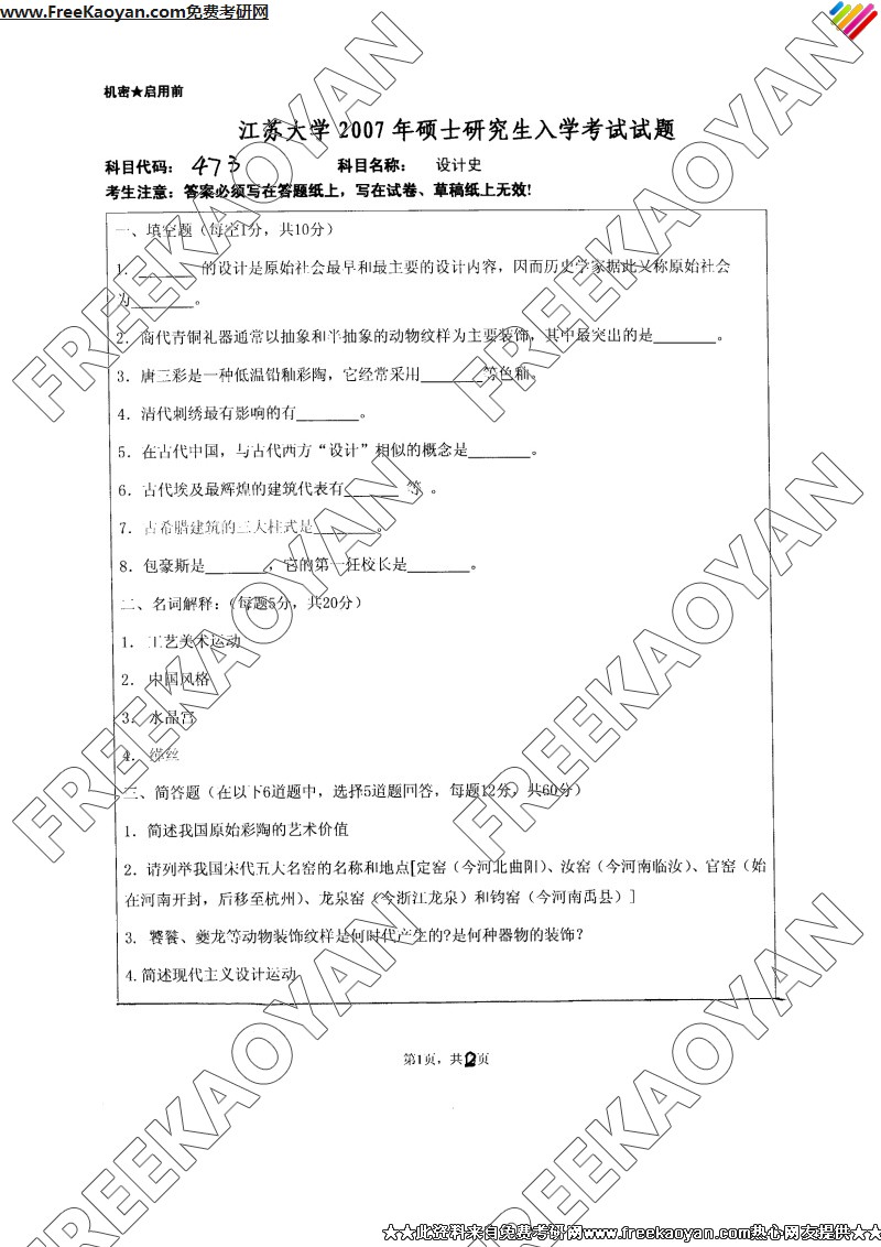 专业课考研经验 本站小编 FreeKaoyan 2018-01-23江苏大学2007年考研真题-设计基础