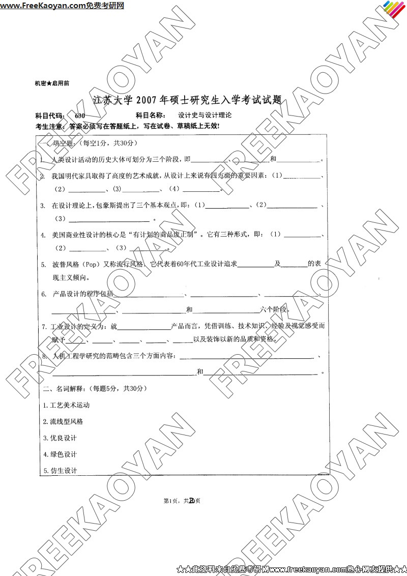 专业课考研经验 本站小编 FreeKaoyan 2018-01-23江苏大学2007年考研真题-设计史